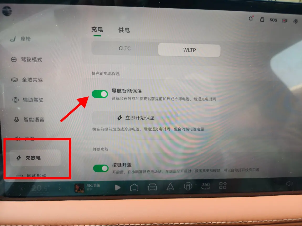 2️⃣小鹏车机设置:进入车机端→点击设置→选择充放电→选择打开导航智能保温,这样系统会在导航到快充站前提前加热或冷却电池,提升充电功率,缩短充电时间~鹏友,学会了吗?