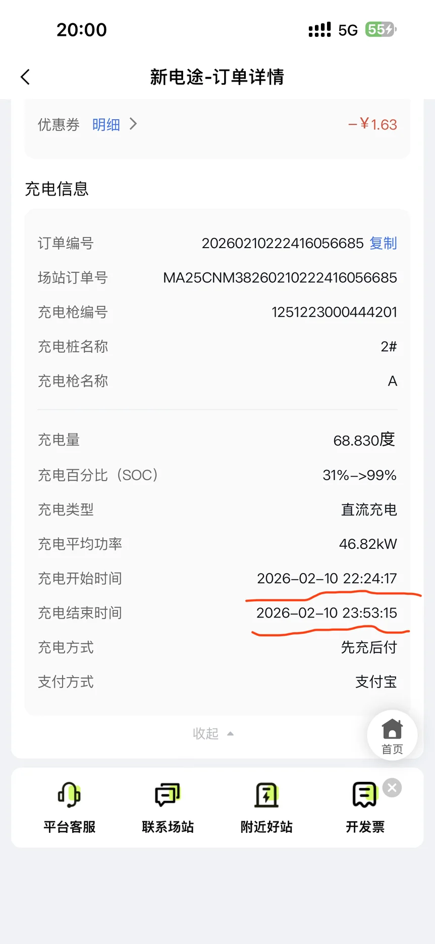 • 残酷对比:之前在第三方160kW 桩充电,看着标称很高,但只要旁边有车并充,功率立刻腰斩!实测平均功率竟然只有 46.82 kW,充个电花了一个半小时…… 🐌😭