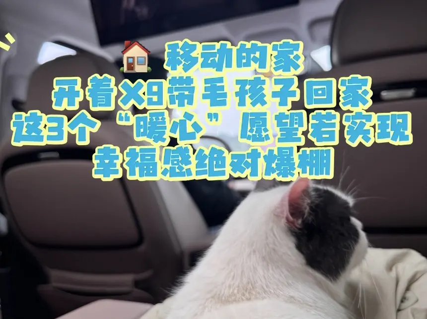 春节带着全家老小(还有家里的毛孩子🐱)回老家,X9的大空间真的太能打!零重力座椅躺平了爸妈,大彩电哄好了神兽。但作为一名“细节控”铲屎官,我对X9的座舱还有一点小小的期待。