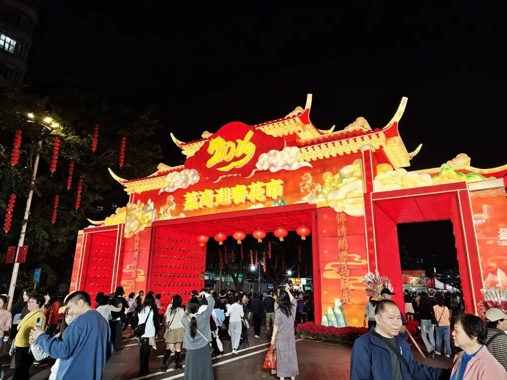 一到路口,那座红墙金瓦的门楼就撞进眼里,“荔湾迎春花市”几个大字衬着2026马年的花灯,灯火璀璨,人潮涌动,耳边是熟悉的广式寒暄,空气里飘着年桔和腊味的香气,这才是最地道的岭南年味。