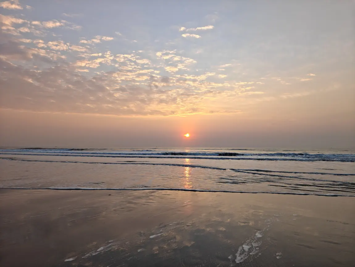 为了看一场海上日出,我们凌晨四点就从酒店出发。X9的城市NGP在漆黑的公路上稳稳前行,精准识别着路边的路牌和偶尔窜出的小动物。抵达沙滩时,天空还只是一片鱼肚白,我们裹着毯子坐在车里,透过天幕等待着第一缕阳光。