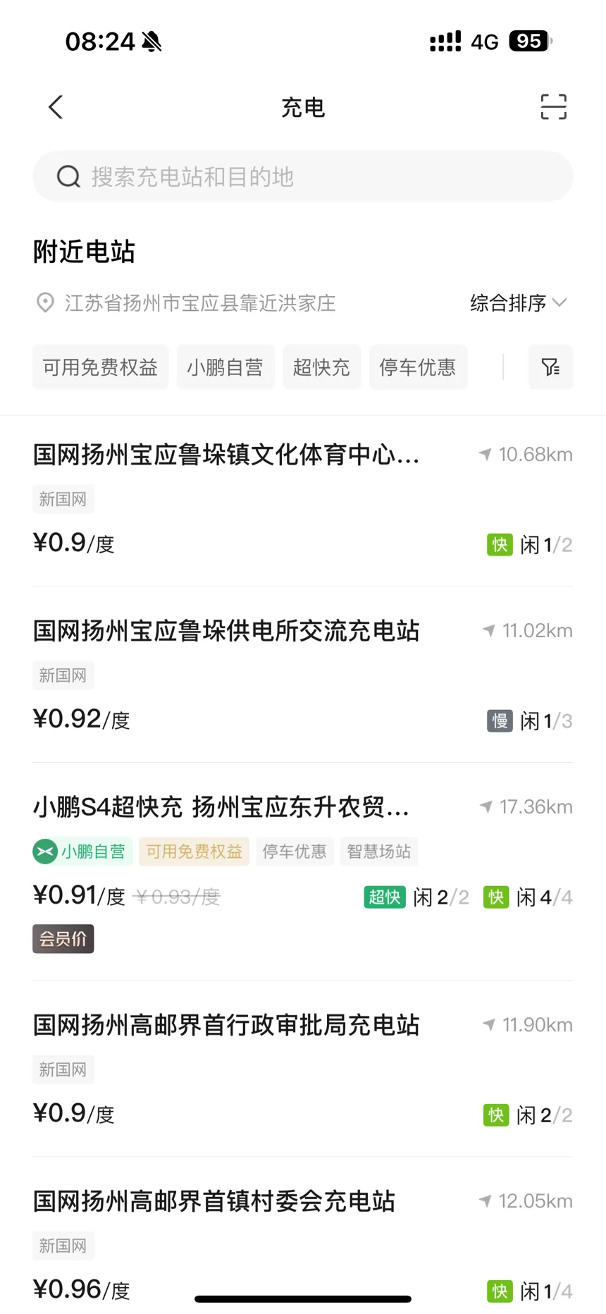 到家前把电补满,找桩不用折腾,直接在小鹏APP里筛选就行,界面清楚,超快充、快充、慢充一目了然。