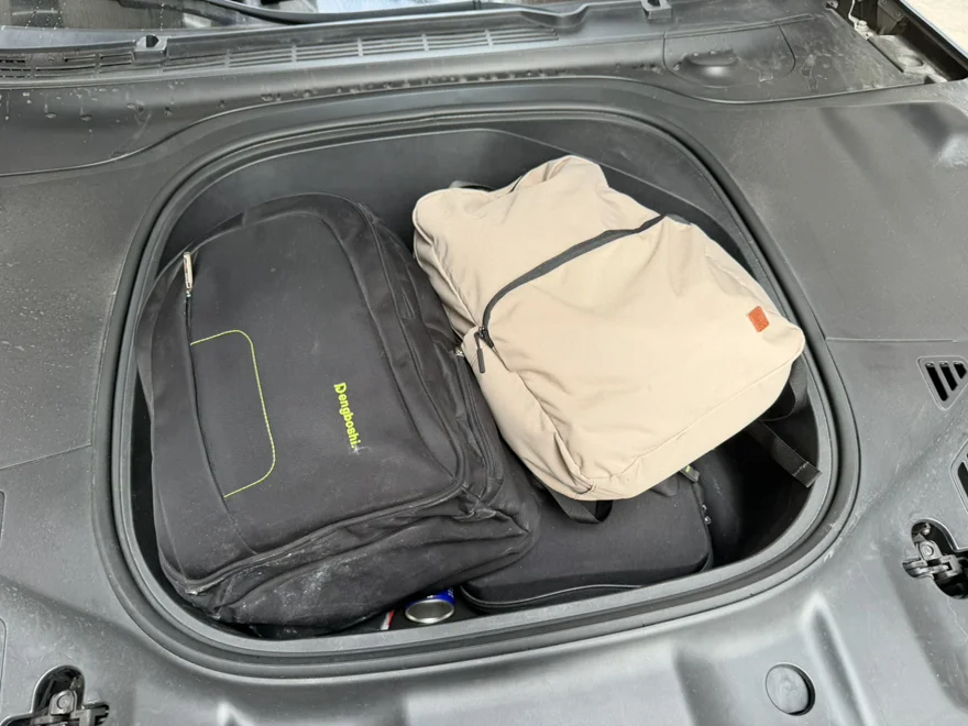 这趟回家5人满载,和亲戚一起回去。所以,我把前后备箱的行李和手信都塞满了。话说回来,我是特别喜欢P7这个钱备箱,可以放两个装得满满的背包。重点是背包下面原本还有一些杂物,比如便携式充电器和毛巾,除雾剂等。前备箱实在太实用了。