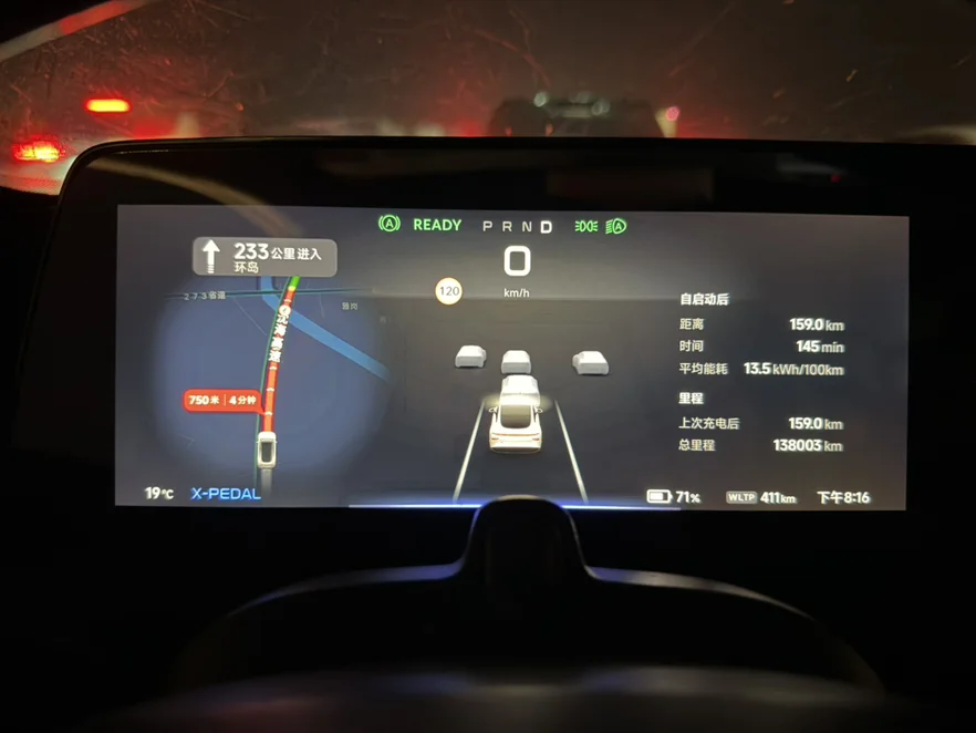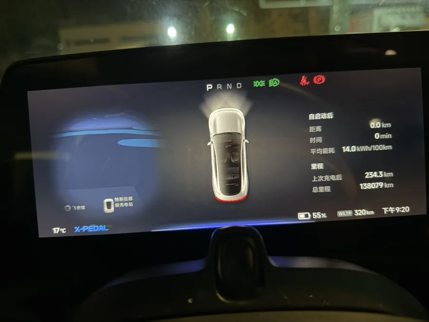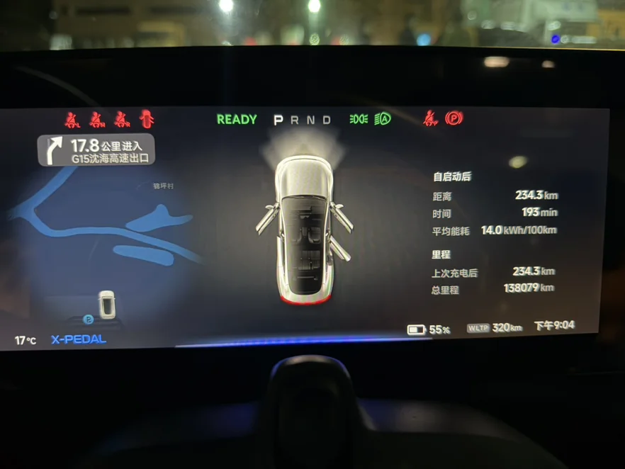 晚上9点04分,经过3个多小时,走了243.3公里,我的爱车也突破了13万8千公里的里程。第一段路WLTP还剩余320公里,出发前是574公里,消耗254公里,续航达成率居然有95.8%。不亏是P7越塞车越省电。而能耗是14kWh/100km。