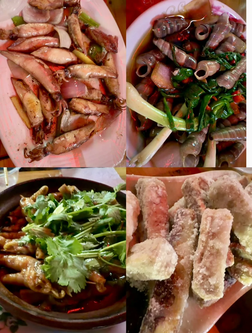 回到目的,有点饿了,把宵夜吃上,体验粤西宵夜。海螺、章鱼、炸芋头等。