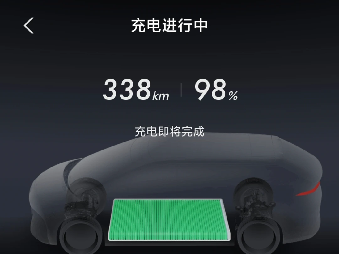 从30%电量开始,峰值功率瞬间冲到285.8kW,电流与电压的高效配合,让电量条像被按下了快进键。短短十几分钟,电量就从30%跃升至98%,表显续航也稳定在338km,完全覆盖了日常通勤与短途出行的需求。