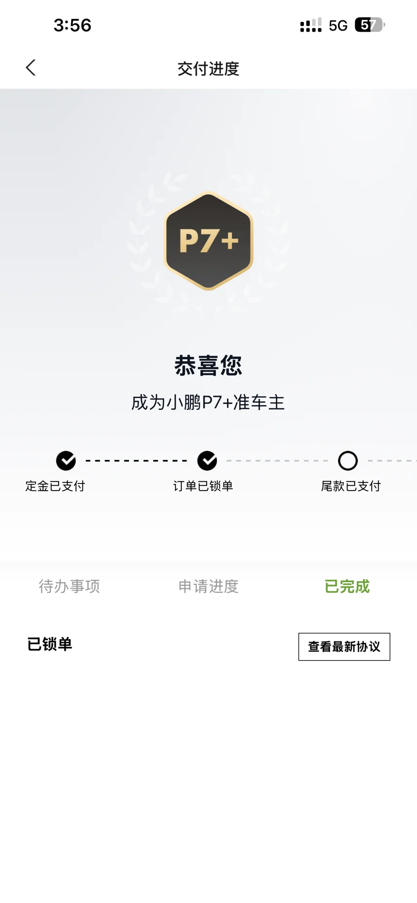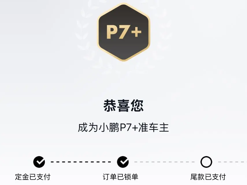 在反复对比了几款同级别车型后,我还是被小鹏P7+的综合实力打动。我正式完成了大定。销售小哥专业又耐心,帮我算了最划算的金融方案,整个过程非常顺畅。
