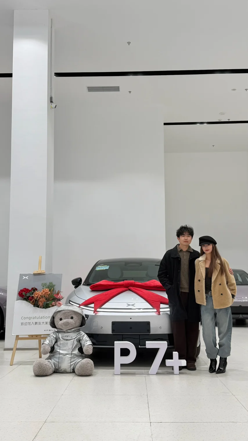 其实最早我是被X9所吸引的,当时觉得如果未来有宝宝的情况下大空间和高舒适性能够满足一家人的需求,但是换车的理由仅仅是为了降低使用成本,加上老婆在某书上被P7的外观所吸引,所以我们决定去店里看一下车,当我们看到新款P7+的时候就已经喜欢上了这台整体充满未来科技感的配色及外观设计的大空间家用车,由于这是我们的第一台电车,所以我们对智驾的概念几乎为零,直到销售热心的带领我们进行了试驾,我们才直观的感受到了科技改变生活这句话的含金量,试驾结束后我俩就在心底种下了一颗种子:买!