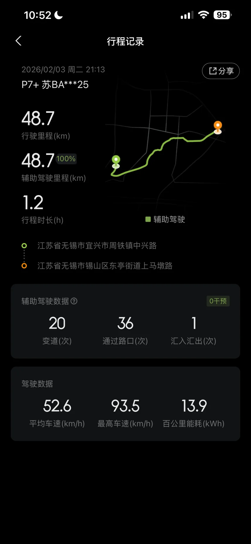 因为提车之前我就已经完成了app辅助驾驶考试,就是为了能第一时间体验智驾,所以刚从交付中心开出来的时候就急不可耐的向下拨动智驾挡片,但是并未生效,后来才知道需要开出园区才能使用NGP😝,就这样一路带着家人智驾回到家中,并向父母展示了自动泊车,在这几天的使用过程中我才知道小鹏的车位到车位功能已经如此神奇,(需要给小P学习的过程)。使用了两天之后我又打开了共驾模式,这对于我来说完美解决了参与智驾的驾驶乐趣,因为在一些非常规路段及车况你可以手动操纵方向盘以及加速来完成一些目前智驾所不能解决的路况,对于驾驶人来说也是一种驾驶乐趣。