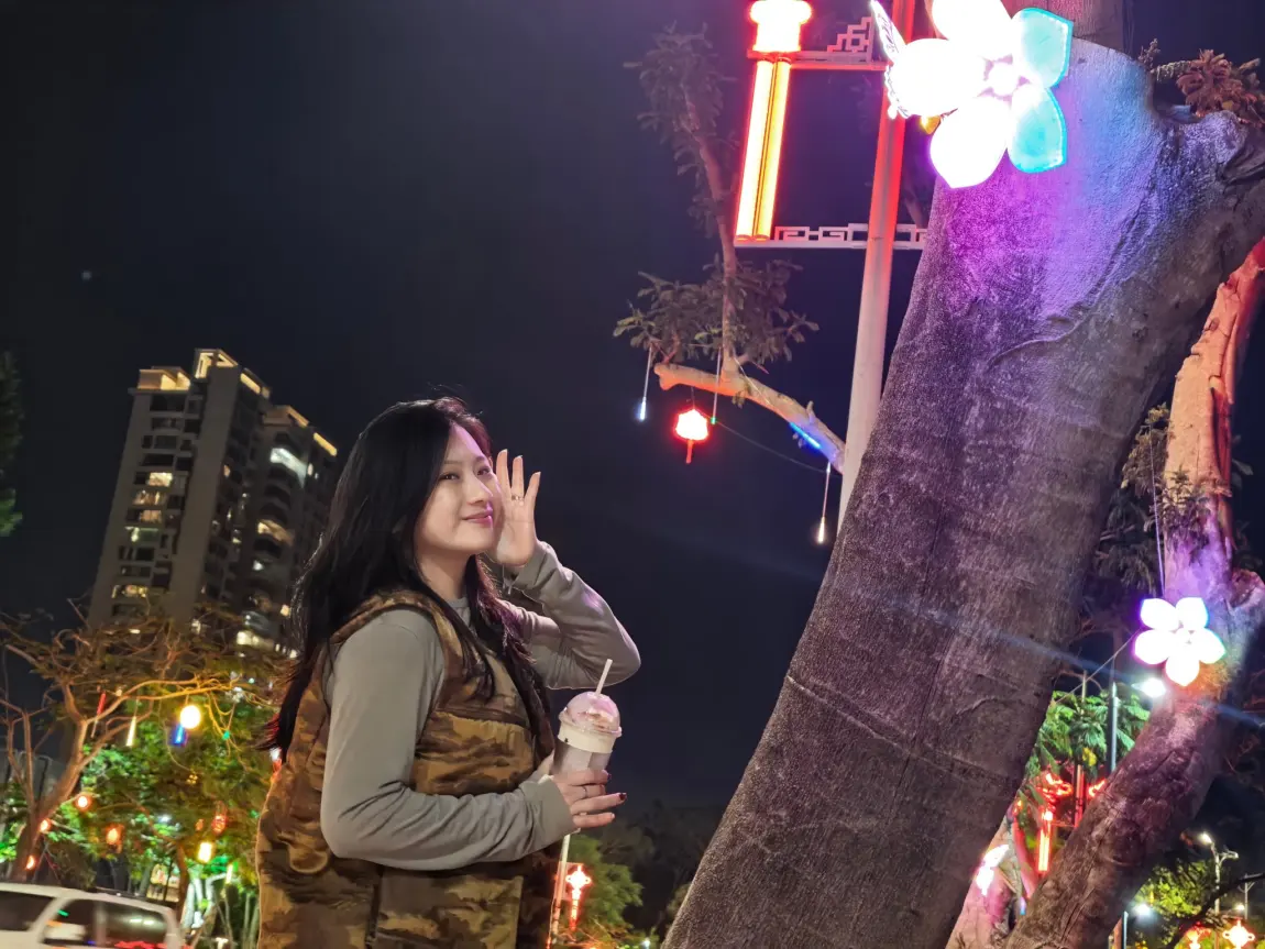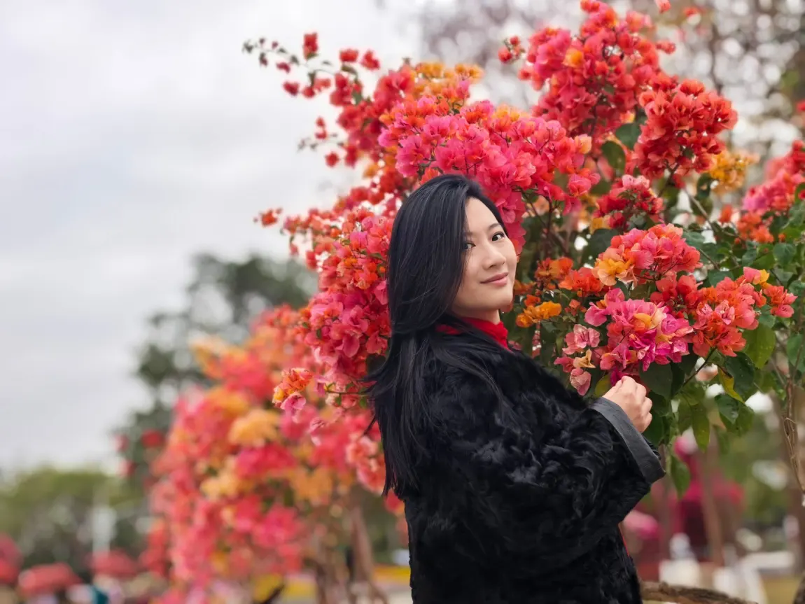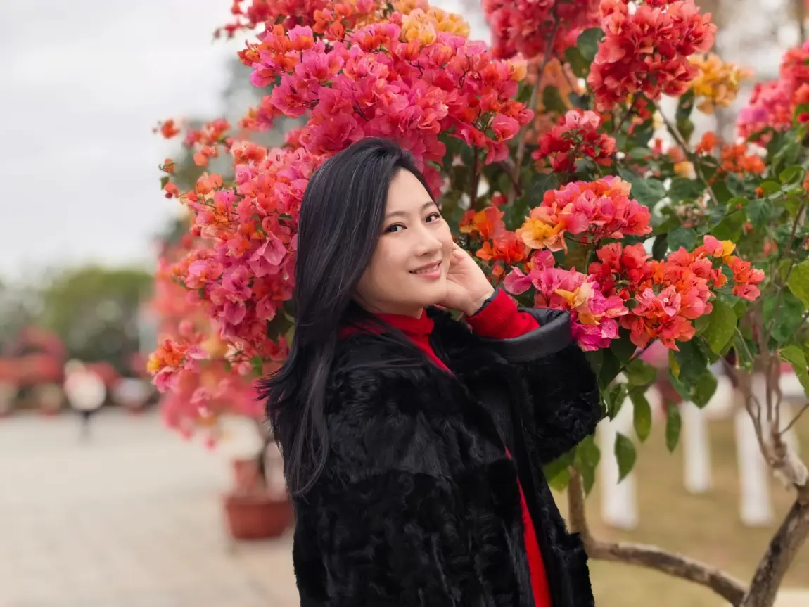 转身步入园区,成片盛开的三角梅撞入眼帘,红的热烈、粉的明媚,把自己融入花海,定格下美好的瞬间。公园的礼堂里,抬手比向“马上发财”的祈福标语,把马年的美好期许悄悄藏进镜头。风里满是草木的清香与人间烟火,步道上人影悠闲,处处是团圆、是欢喜。