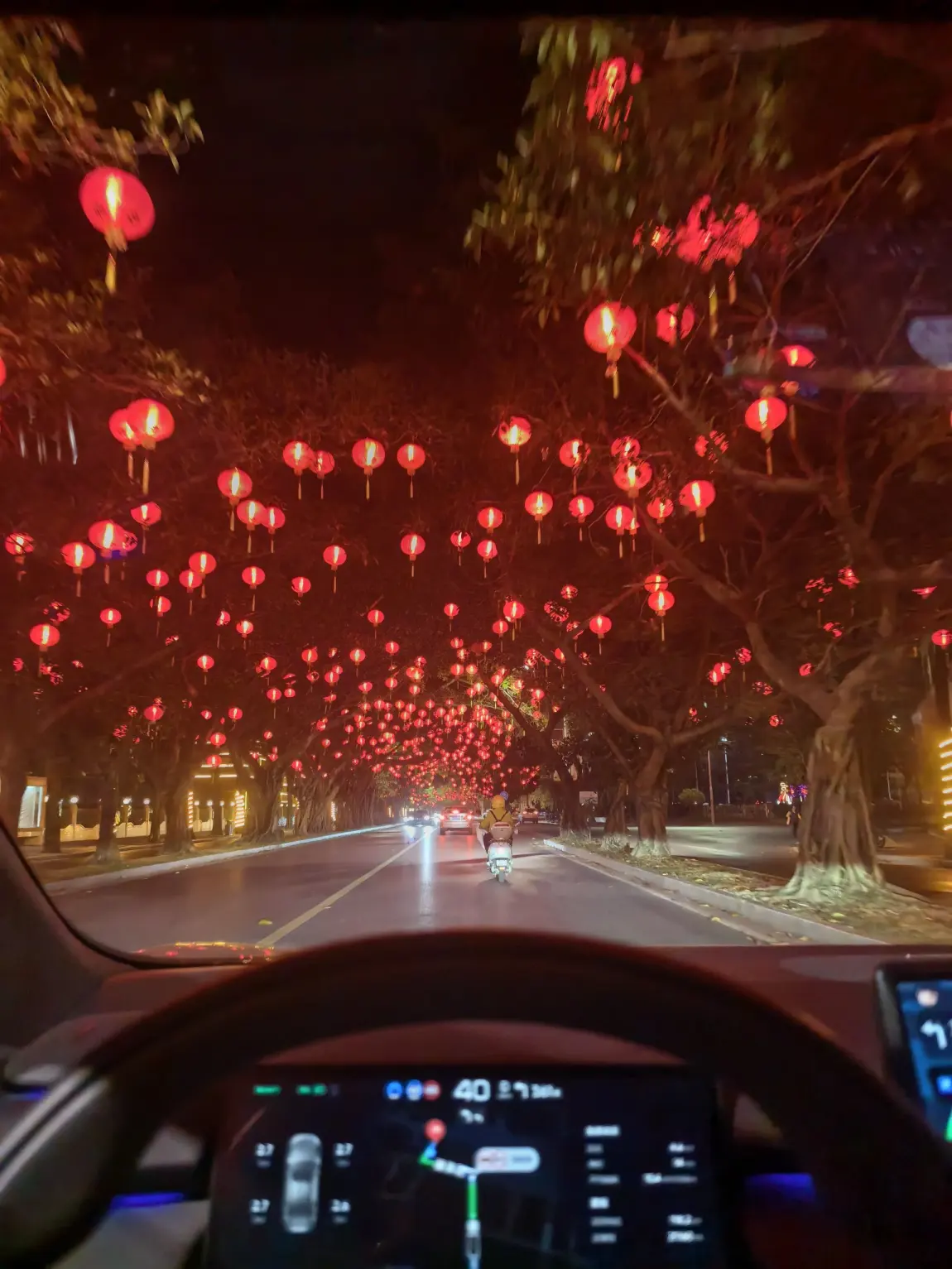 车灯稳稳照亮前路,座舱内氛围灯亮起,与窗外的年味灯火相融。车外是人间烟火,车内是安心舒适,新年的暖意与前行的从容,在这一刻尽数拥入怀中。
