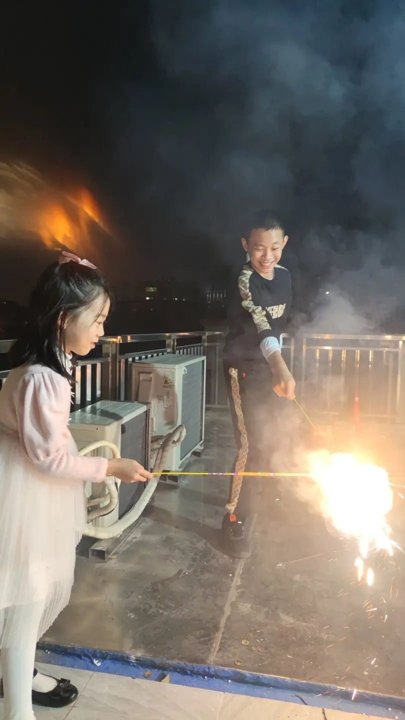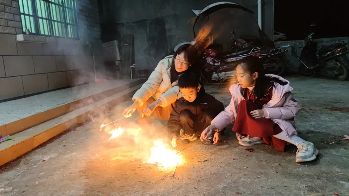 夜幕降临,星空缀满繁星点点。我们在门前点燃烟花,烟花的流光映亮每个人的笑脸。孩子举着仙女棒转圈,火花划出的弧线,像极了一个个绽放的笑脸。小孩说:“太好玩了!如果每年都回来过年就好了!”