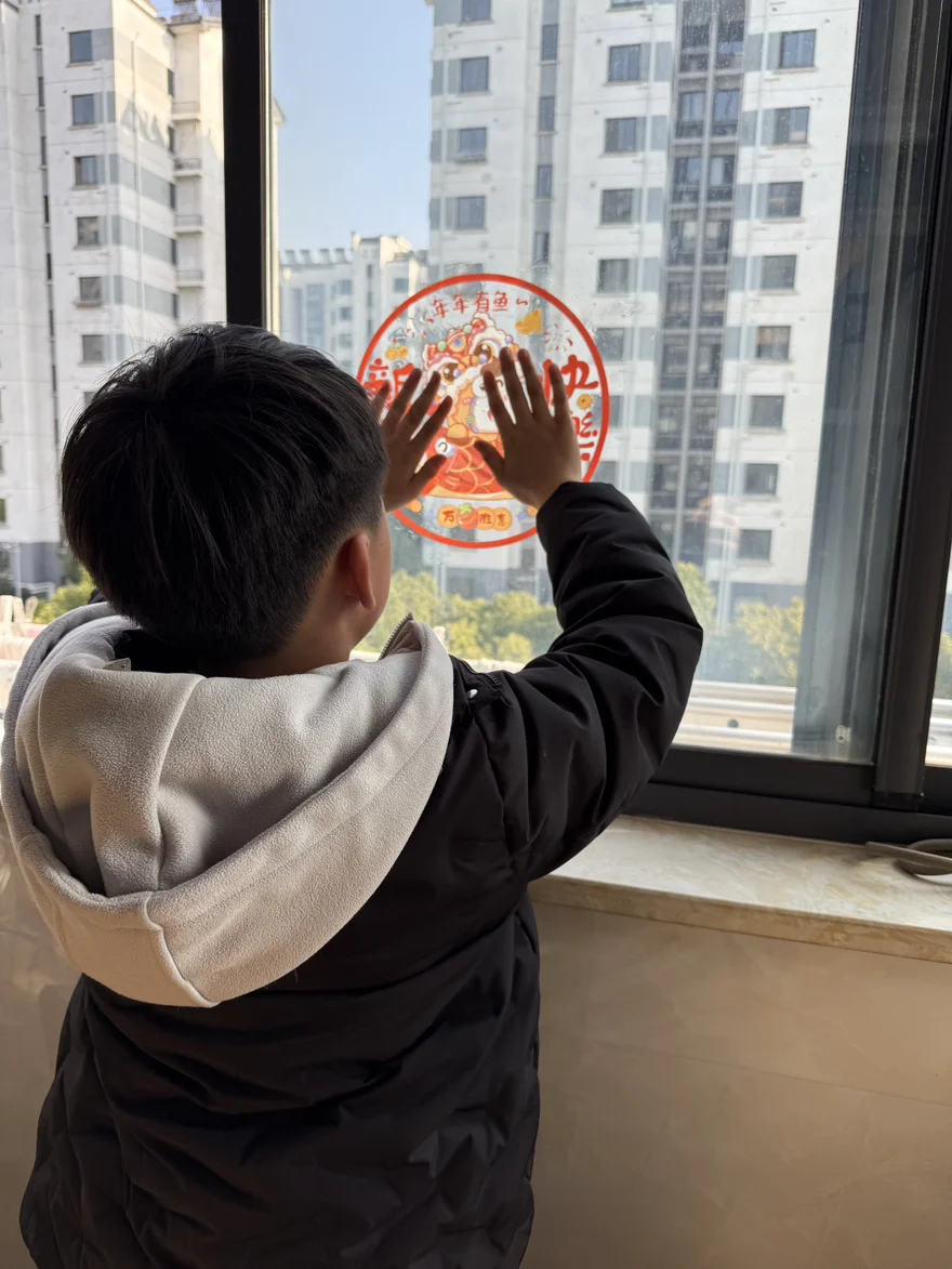 满载年货与期盼,顺利到家。一进门就被小朋友拉着贴春联、粘窗花,小手认真又笨拙,窗上的喜庆,瞬间把年味拉满。
