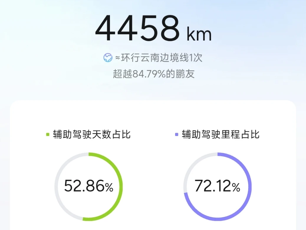 提车到现在已经两个月出头了,我的辅助驾驶公里数已经超70%,智能驾驶从尝鲜功能变为日常刚需。特别是高速路段,大大幅降低长途与拥堵驾驶疲劳,小鹏的ngp以精准感知与预判提升行车安全,让驾驶更轻松。
