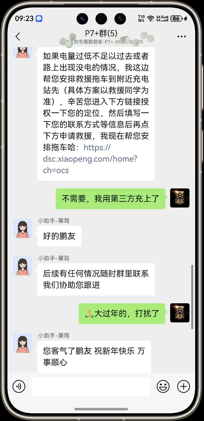 群里小助手也秒回,连拖车链接都发来了,服务真的没话说。