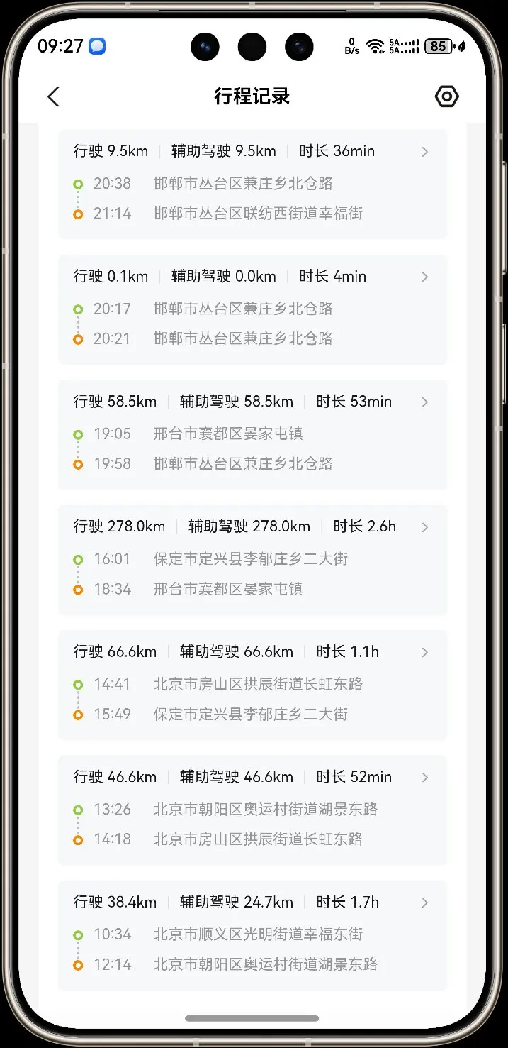 (咱先不说别的,就看看这一锅续航,北京下午两点出发,问题平均差不多5°,有阳光,车内不冷没开空调,全程听歌全程智驾,根小p互动很多)