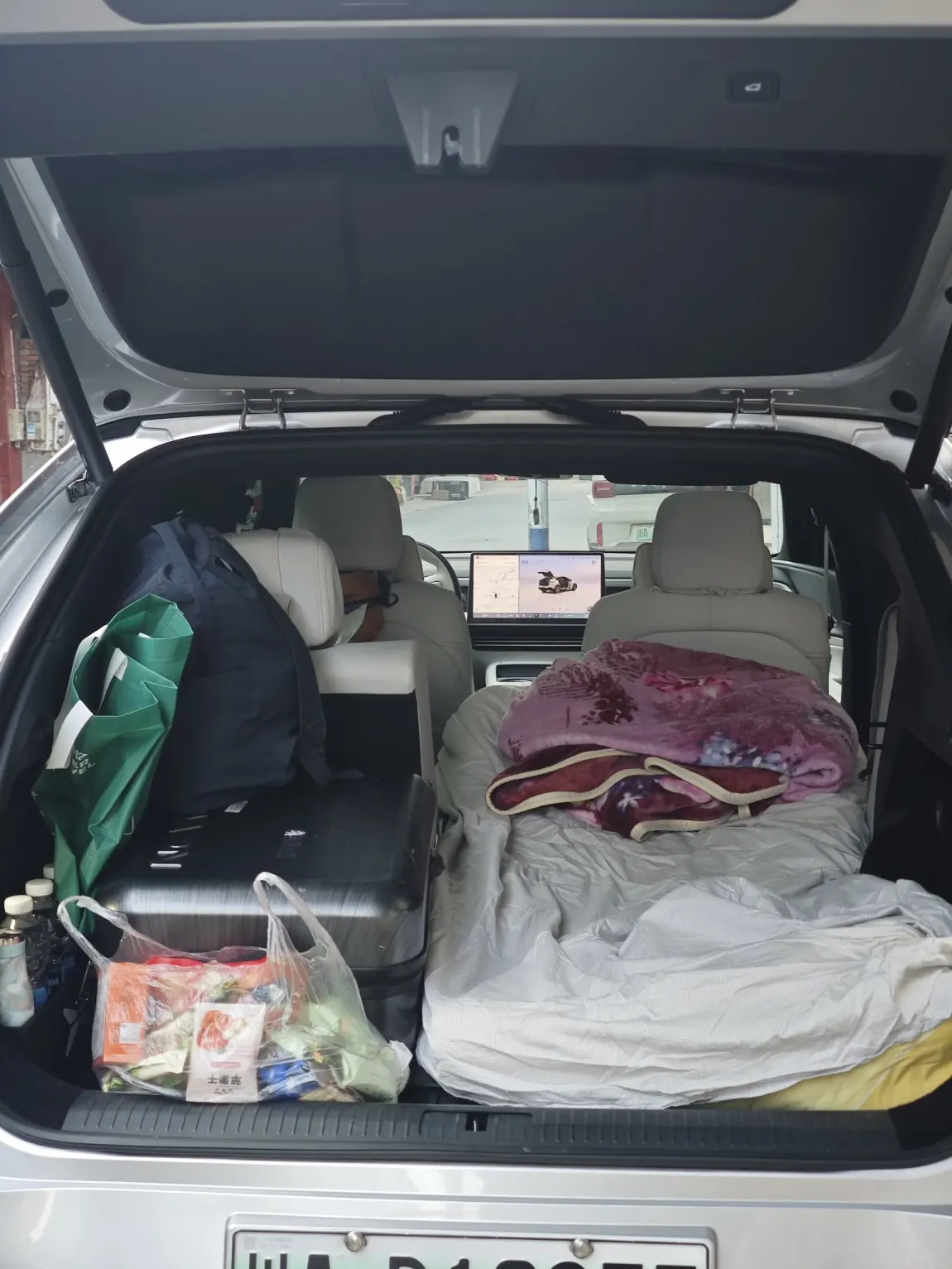 收拾行李时才发现,给爸妈带的按摩仪、给侄女买的玩具、自己囤的咖啡豆…后备箱竟被塞得满满当当。深夜给车机导航设置“老家地址”时,看着那个熟悉的乡镇名字,忽然有点恍惚——虽然已经记不得是第几次回家了,但是每一次都难掩心里的激动。长途旅行避免不了休息,小鹏的后备箱还可以变成一个单人床,确实很方便。