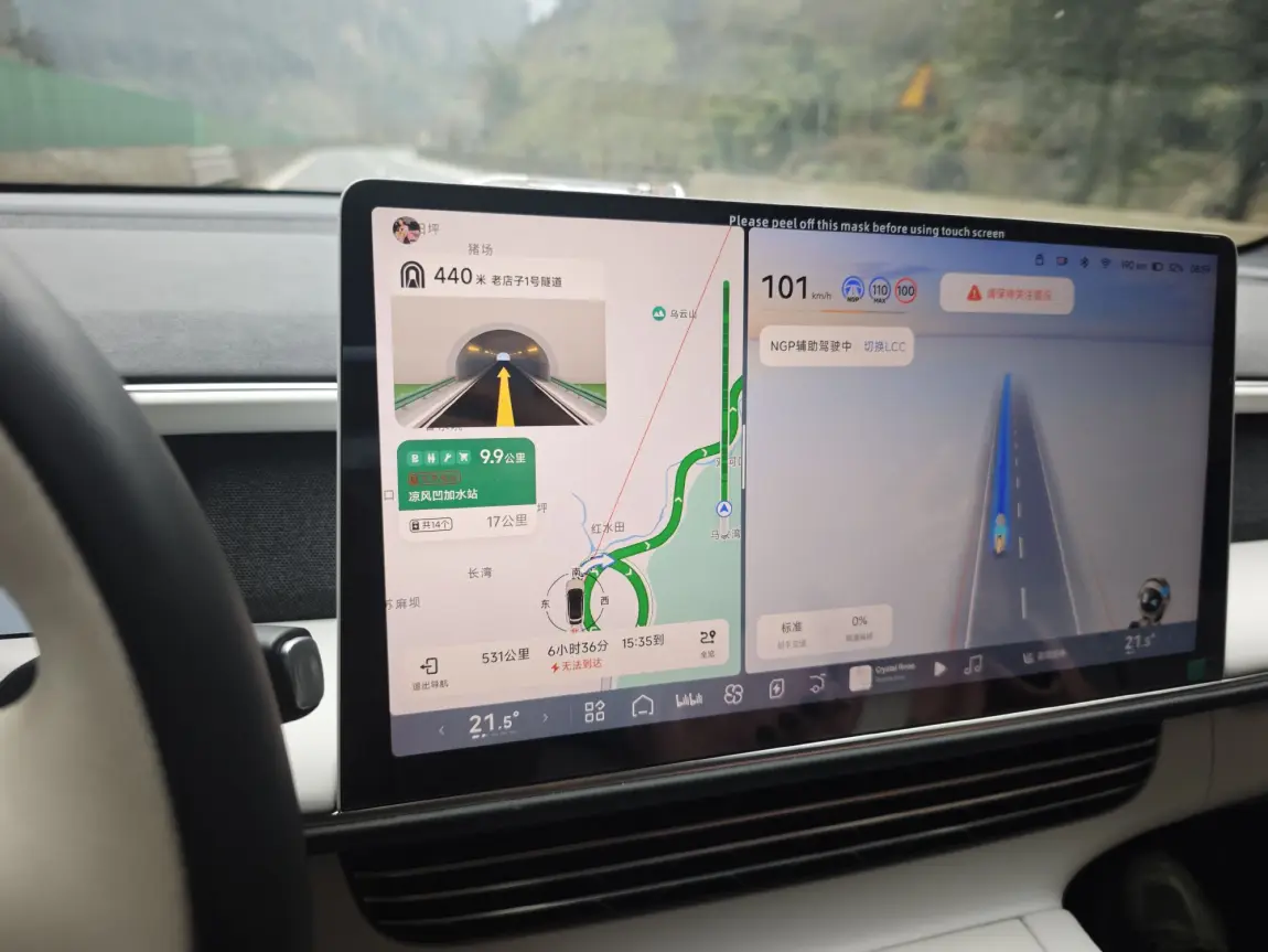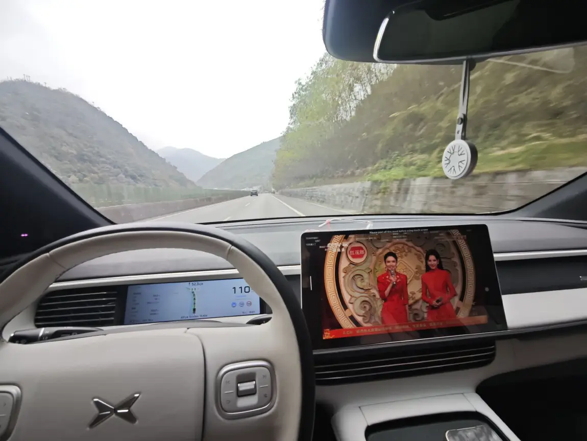 成都到贵州虽然路途不长,只有几百公里。但是山路很多,NGP在成渝高速上像个沉稳的老司机。但一进贵州,考验才真正开始。连绵的隧道群让信号时断时续,海拔起伏导致能耗波动,我紧盯着中控屏上的续航预估,手心微微出汗。但是开了不久,NGGP的平稳还是让我慢慢的放松下来,我甚至还能惬意的看春晚老婆也能在副驾驶上悠闲的补妆。