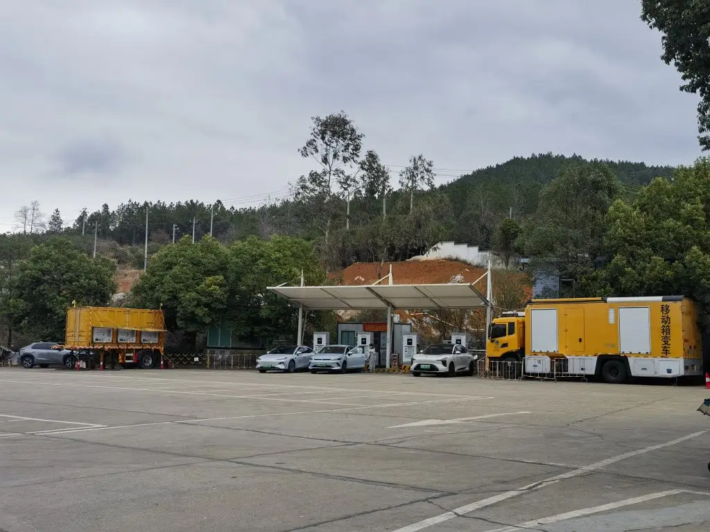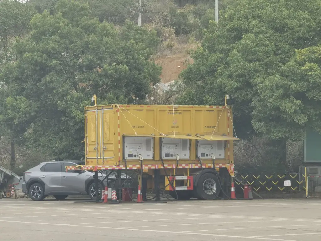 在这里必须感叹一下祖国的强大💪,服务区充电桩不够用,应急移动充电车上岗了👍。