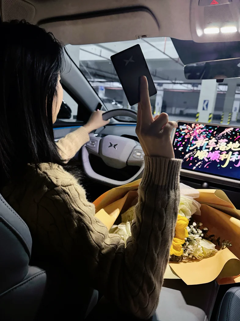 到店后整个提车流程特别顺畅:验车确认、办理手续、购买保险、申领临牌,交付专员全程耐心引导,一步步讲解得很清楚,完全不用自己瞎操心。最让我惊喜的是交车仪式感满满,红丝带、鲜花、满电新车,细节里全是用心。