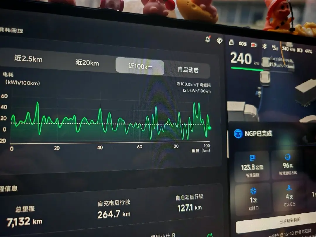 天气不错,没开空调,高速 110-120 加一点点市区行驶了 264.7km,电掉了 255km 。这让我有点刮目相看了