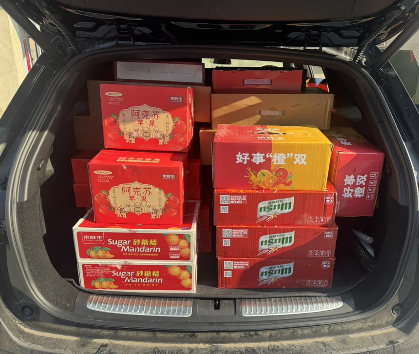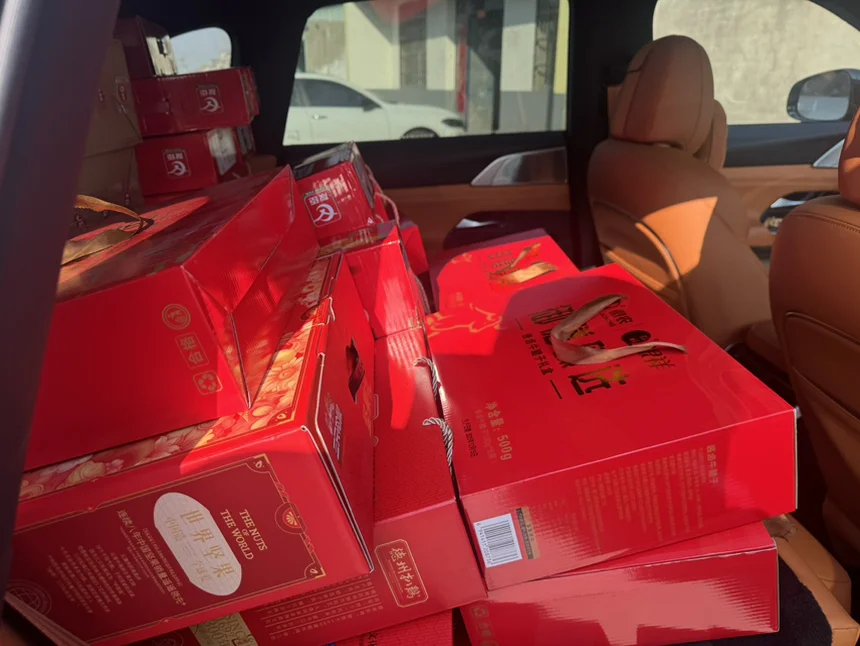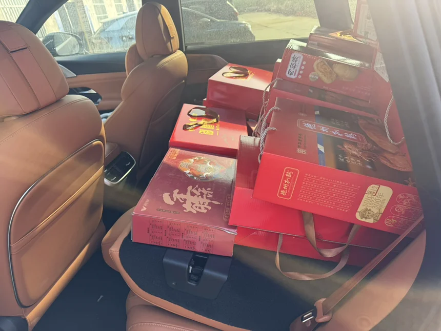 订婚后的第一个新年,仪式感直接拉满!初二去送节礼,一口气准备了60箱礼物,本来还在发愁怎么运走,结果我的小鹏G9后排放倒一放平,60箱轻轻松松全部装下,空间大到超出预期!