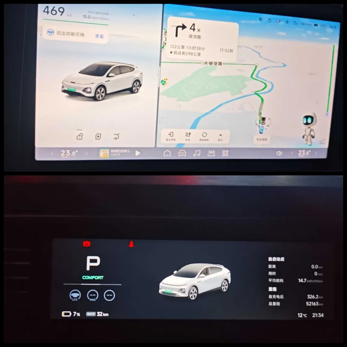 - 到店电量:抵达吉首小鹏S4超充站时,电量仅剩7%,WLTP续航仅32km,属于典型的“极限补能”场景。