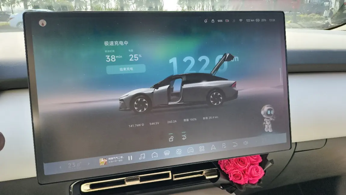出发前在小鹏app上直接一键规划长途路线,从湖北出发到山东700公里的路程怎么充电哪里充电都给安排的明明白白的,没有任何焦虑。它可以自动安排沿途充电站、充电时长、休息点,一健发送到车机就能完事。而且搭配800V高压平台,冲十几分钟就能跑很远了。