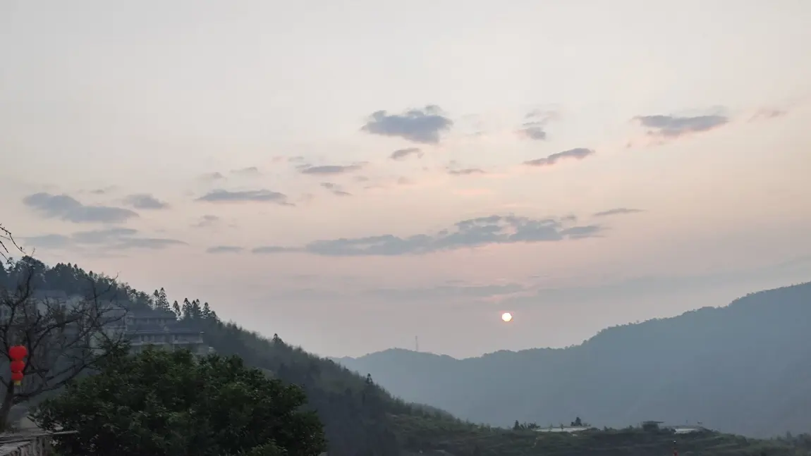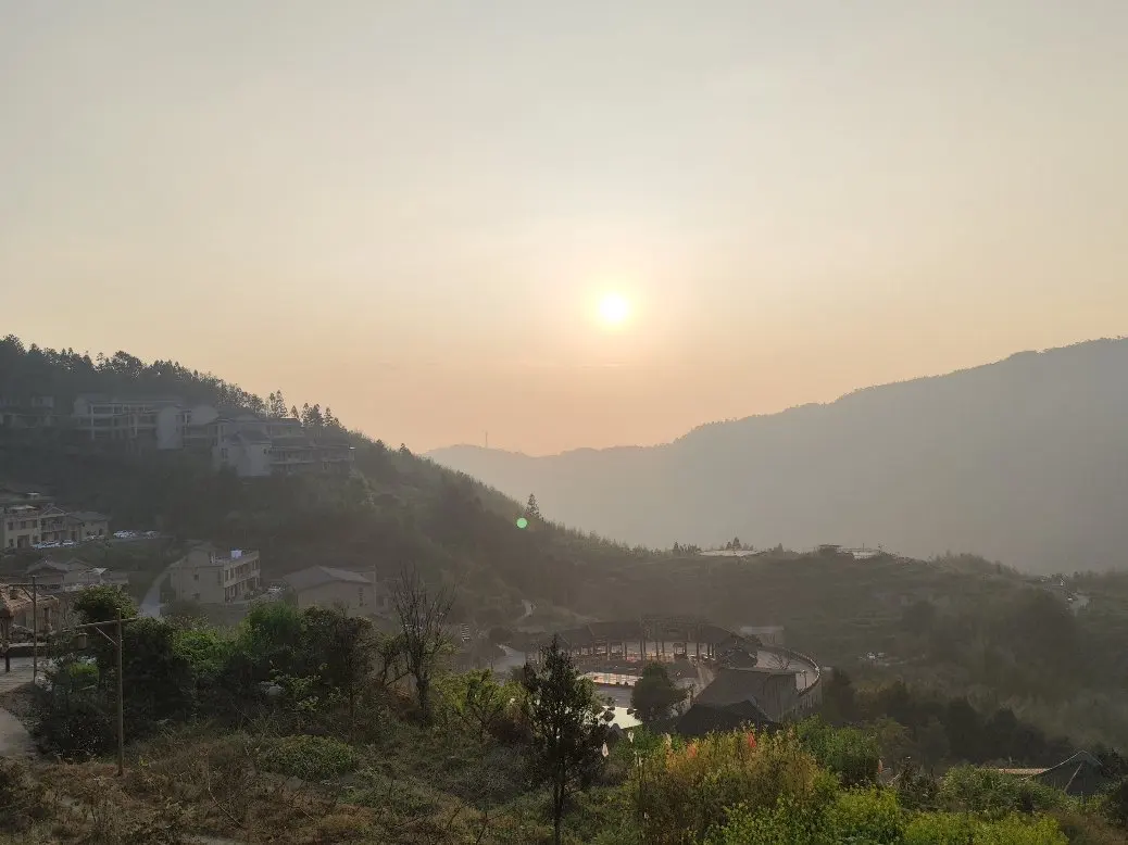 次日早上,早早起床,看了一场美丽的日出,竹海里晨雾缭绕,日出的光辉洒满山林、村庄,村民早早也开始了一天的忙活,你看,早晨的小鹏G9也显得特别精神!