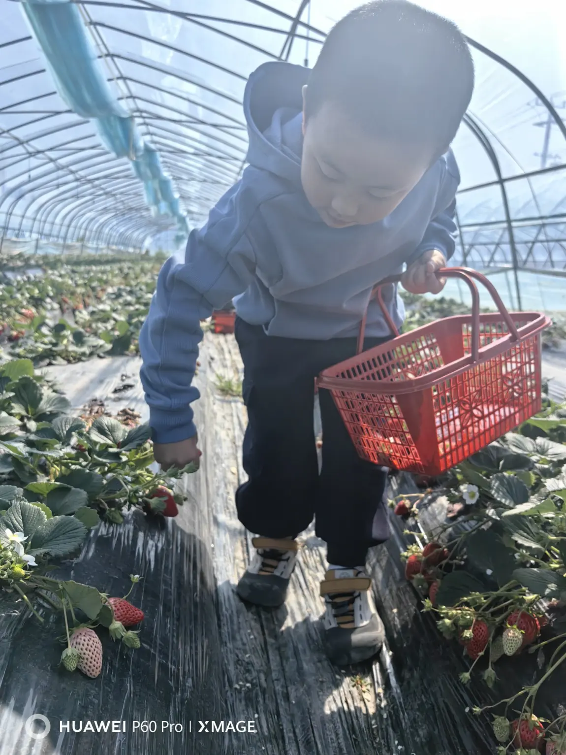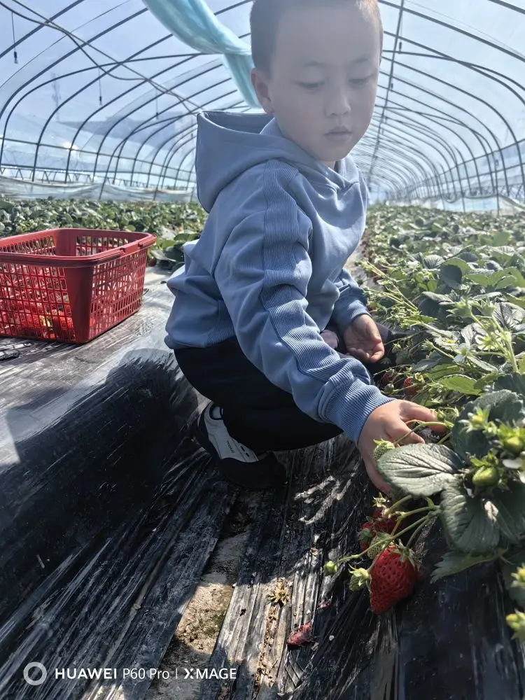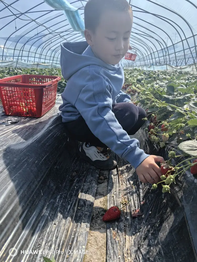 正月初五,我和儿子来到米行草莓园摘草莓。草莓60块钱一斤,天气比较暖和,加上温室效应,草莓熟得很快。