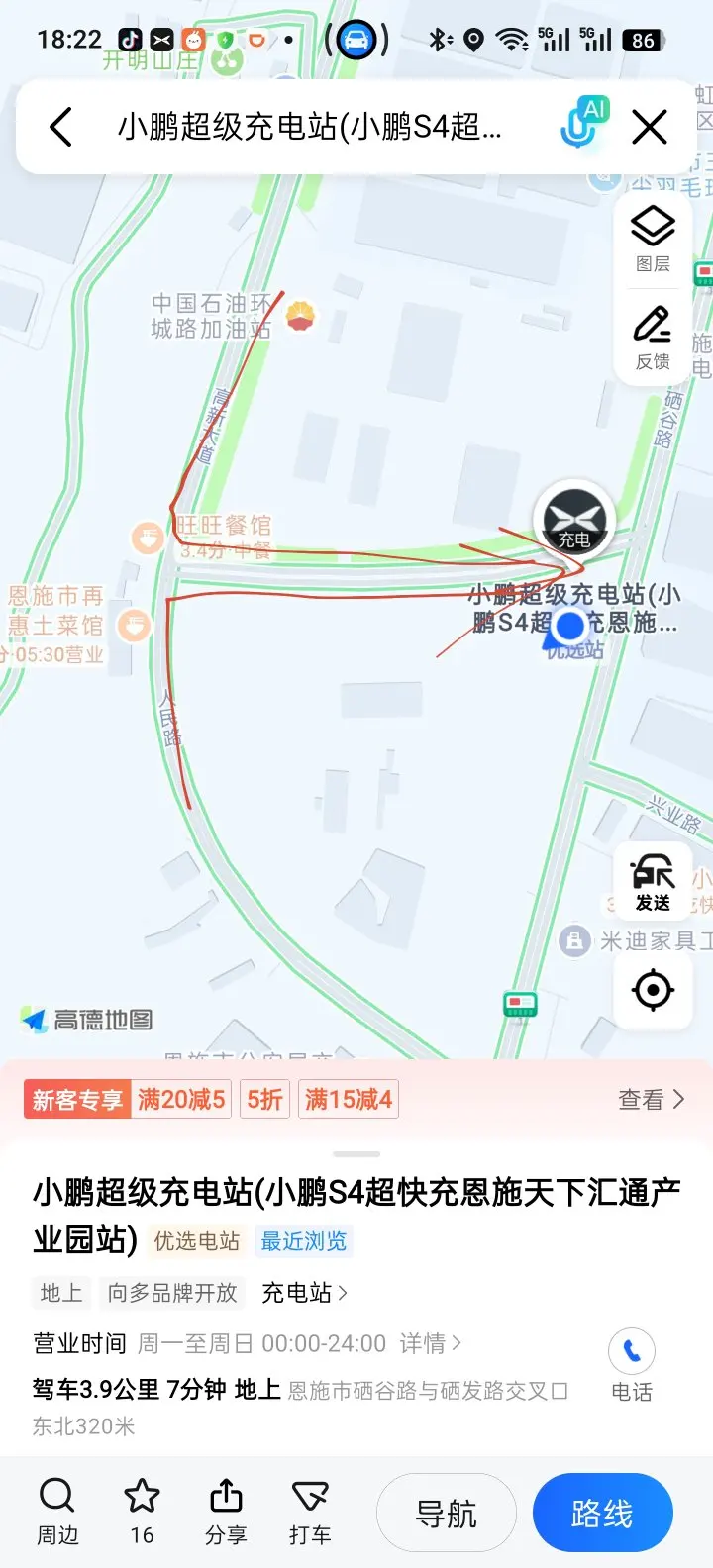 过年到恩施玩,一共搜到两个小鹏S4充电站。选了天下汇通产业园这个站,条件很不错。