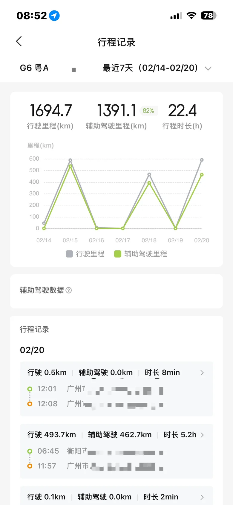 春节出行,总共行驶接近一千七百多公里!NGP辅助驾驶占比超过百分之八十(pro版,只能高速用)!