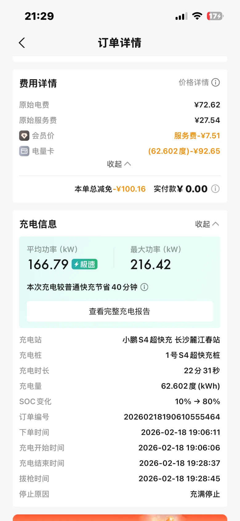 假期去长沙,同样在小鹏自营充电桩充电: