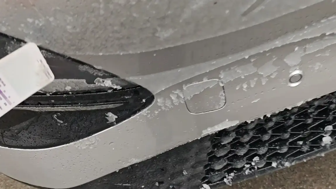 4、虽然说是视觉方案没激光雷达,但毫米波雷达应该还是挺重要,雨夹雪天气,跑高速智驾过程中突然提示雷达故障智驾功能受限,看摄像头画面还挺干净。下高速发现前保险杠结了一层冰,估计是毫米波雷达被挡住了,铲掉冰才能恢复正常。