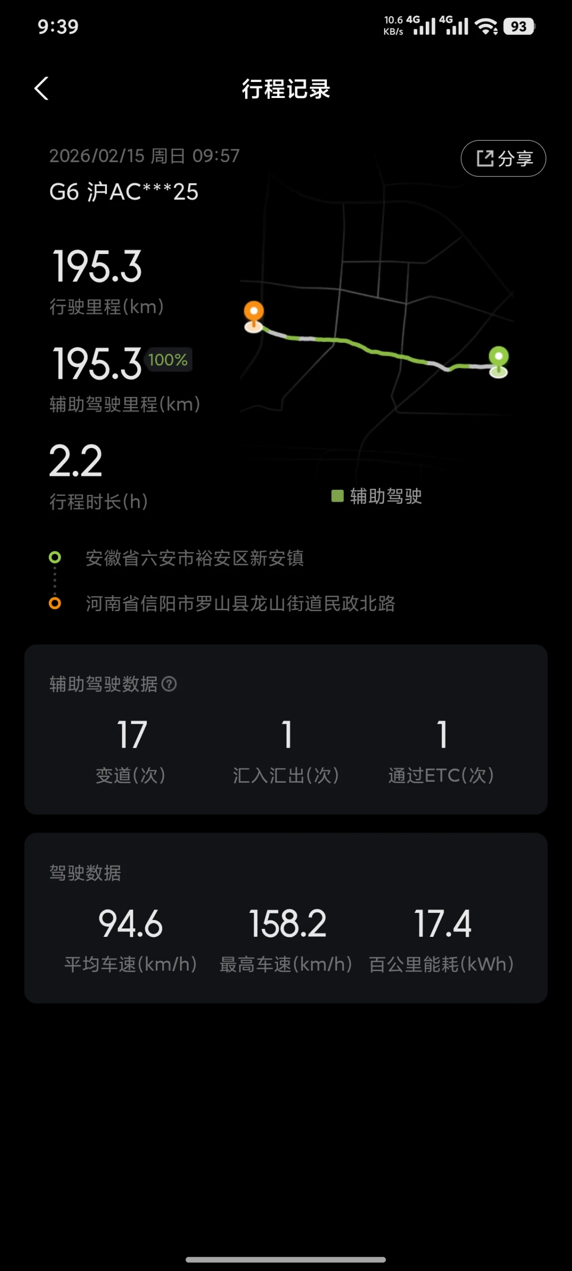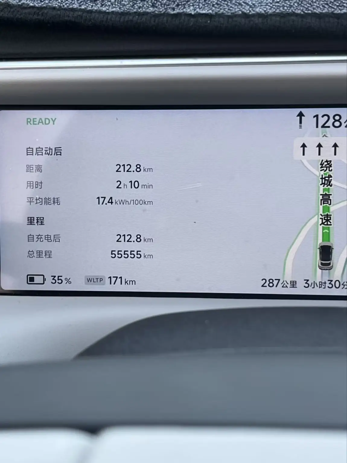 平均车速开到了94.6km/h,最高车速158.2km/h,百公里能耗才17.4kWh。在高速上能跑出这个能耗,我觉得已经非常不错了。
