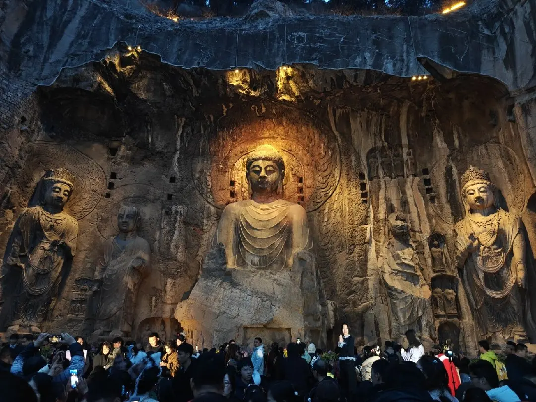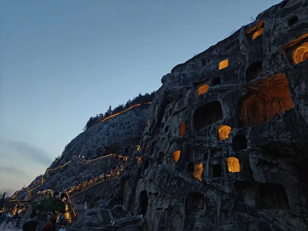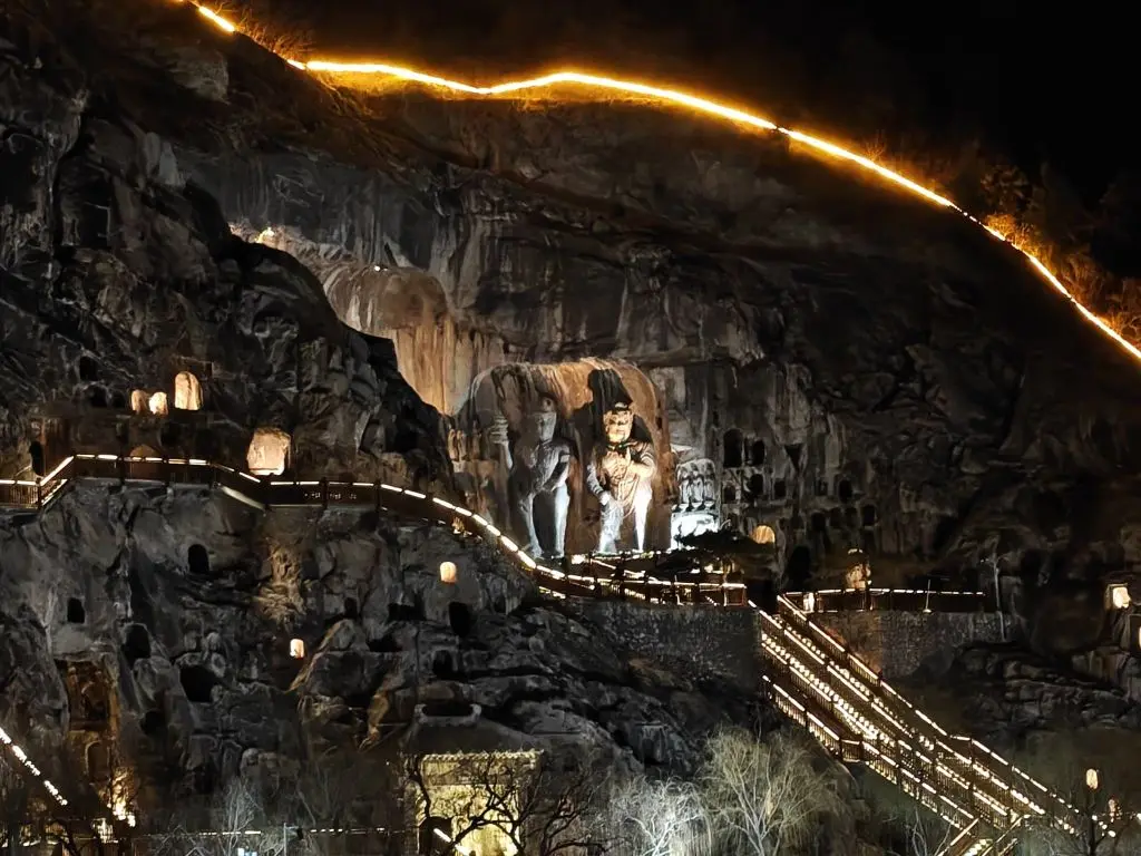 抵达龙门石窟时,刚好赶在检票口关闭前入园,虽说游玩的时间不算多,但幸运赶上了夜里的石窟亮灯。夜幕下的龙门石窟,在灯光映衬下更显庄严与震撼,千佛的轮廓在光影间若隐若现,真切感受到了古代工匠的鬼斧神工。
