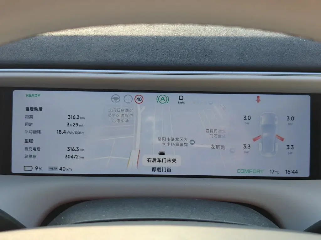 全程基本都开启小鹏HNGP智驾模式,长途驾驶的疲惫感大大降低,省心又顺畅。下午4点45分,我们顺利抵达龙门石窟游客中心,最后一段路更是一口气开了3个半小时,行驶316km后,车辆剩余电量还有10%,里程剩余40km。小鹏的电耗表现着实让人惊喜,一路下来完全没有续航焦虑,智驾加持下的跨城自驾,体验感拉满。