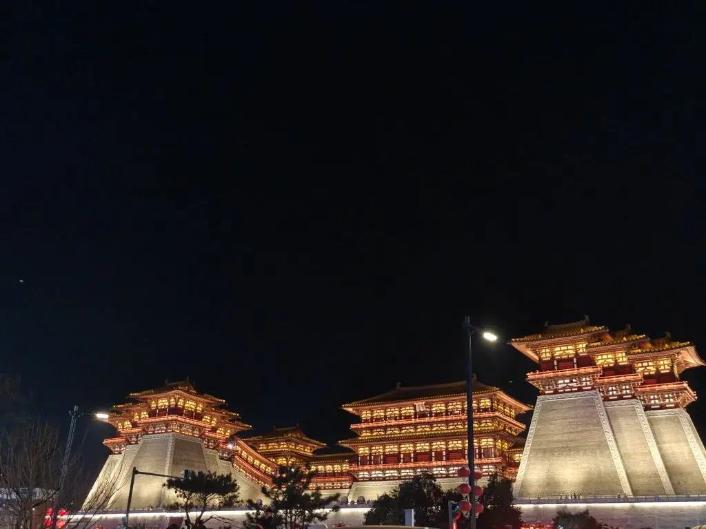 到了晚上,我们前往洛邑古城和应天门欣赏夜景,华灯初上的古城与应天门,古色古香中透着繁华,氛围感十足。不过春节期间的洛阳人气实在太旺,一路上人潮涌动、道路拥堵,也算是新春出游的别样体验。