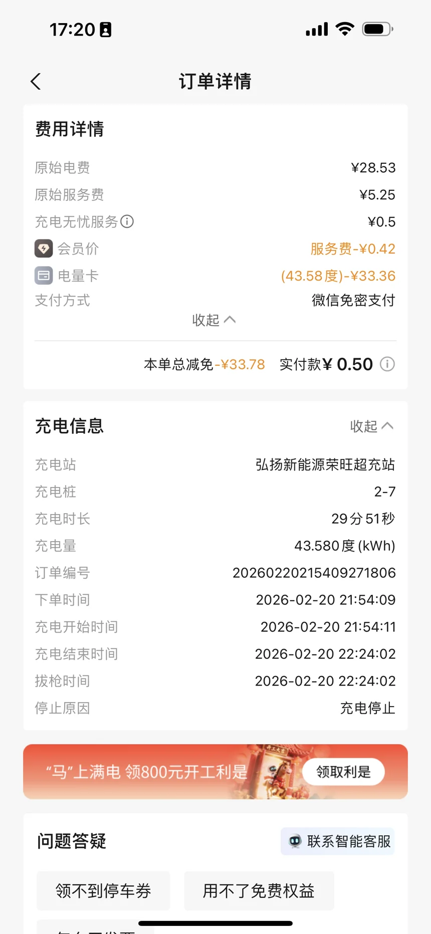 -返程:返程前一晚上,在老家的第三方充电站充满电,43度电,消费33块多,还是挺划算的,耗时将近30分钟,比小鹏自营的超快充速度要慢一些。但是整体还是挺不错的。