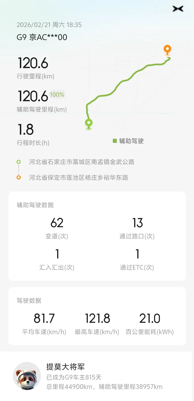 离开襄阳后,我们迎来了返程中最具挑战的一天。天刚蒙蒙亮,我们便踏上了前往保定的路,这一天几乎都在高速上度过,全程行驶了950公里,驾驶时长超过11个小时。如果没有智驾系统的全程辅助,这样的长途跋涉简直难以想象。车机精准的导航、自动跟车和变道功能,让我们在漫长的旅途中依然能保持从容,父母和爱人也能在车内安心休息。