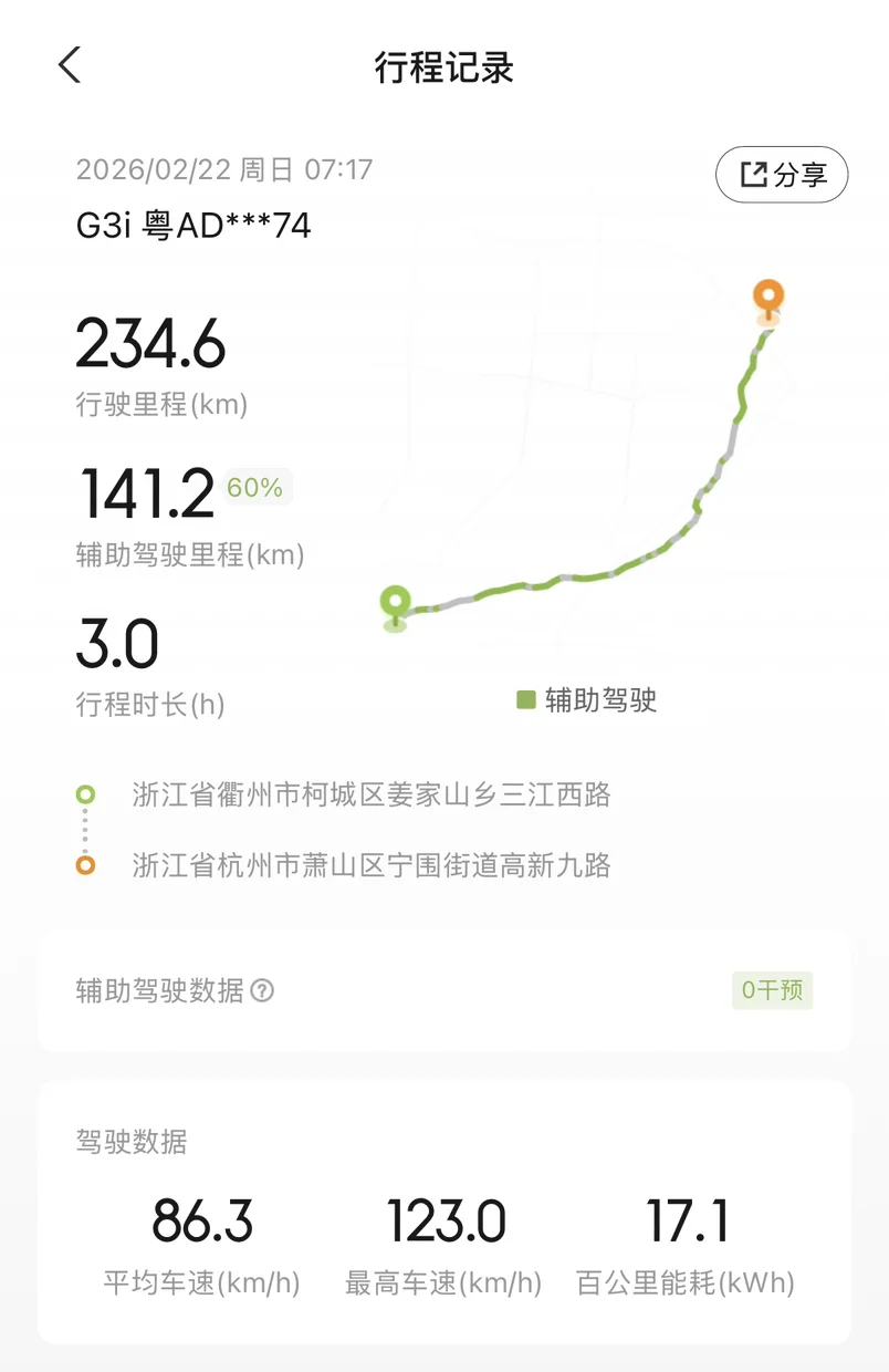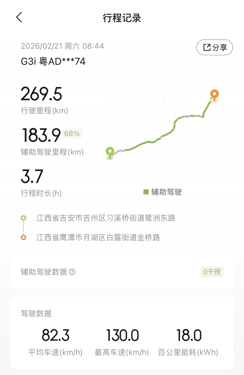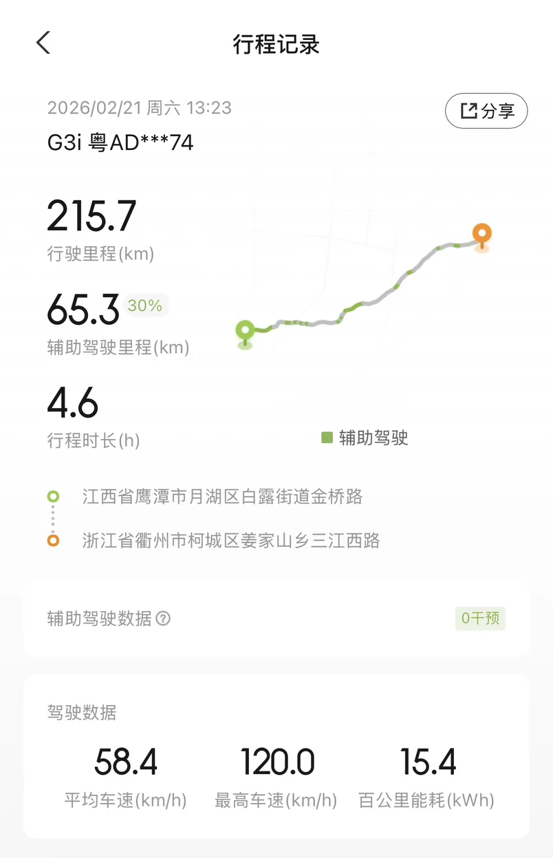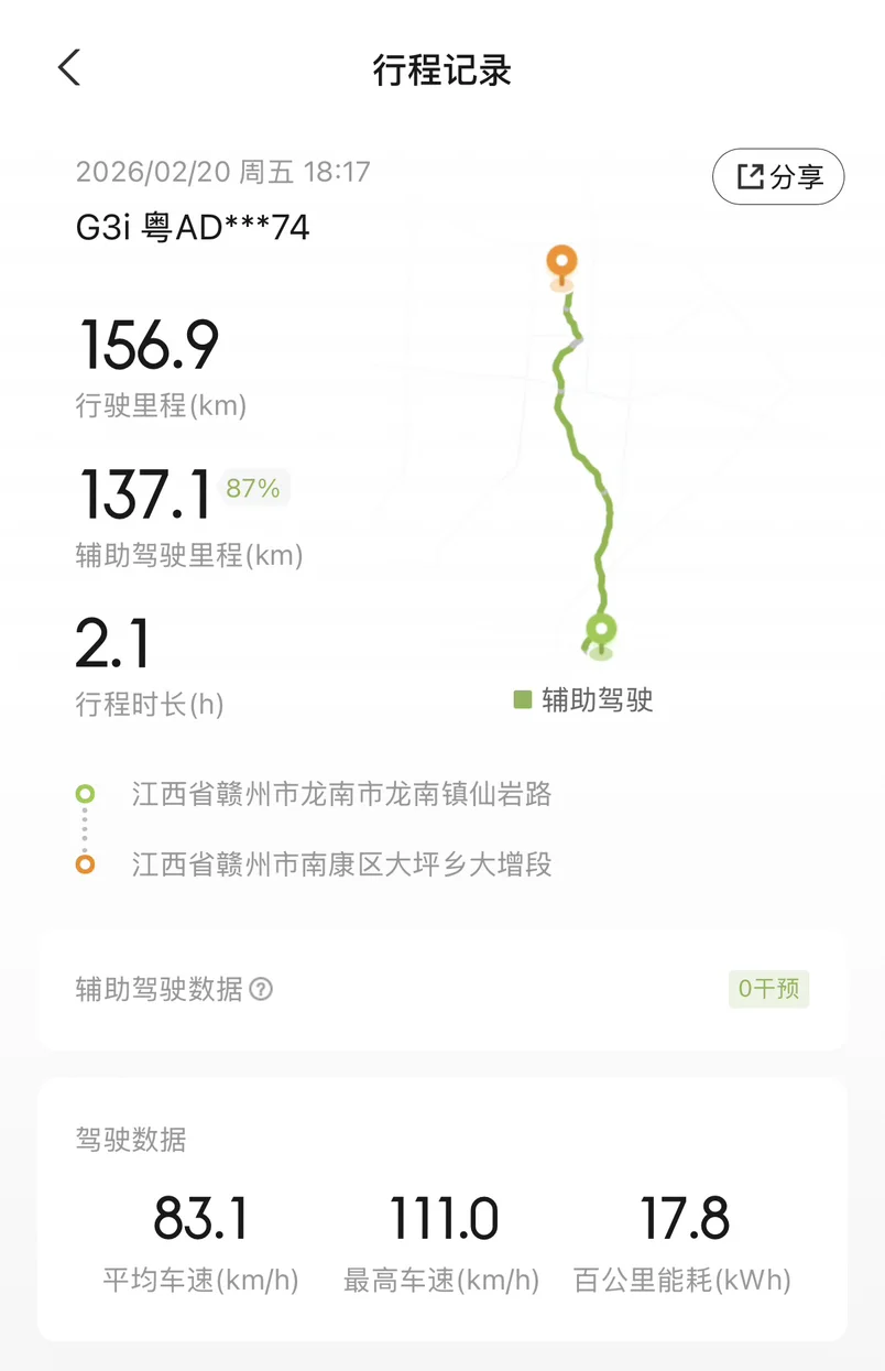 小鹏G3i已经是多年前的车型了,如今已经停产。这次的挑战还是很有意义的,虽然路上看到小鹏多款新车型,也有其他品牌的各种智能电车,但廉颇老当益壮!特别是全程70%辅助驾驶比例,让长途开车多了一份安全,也多了一份省心!