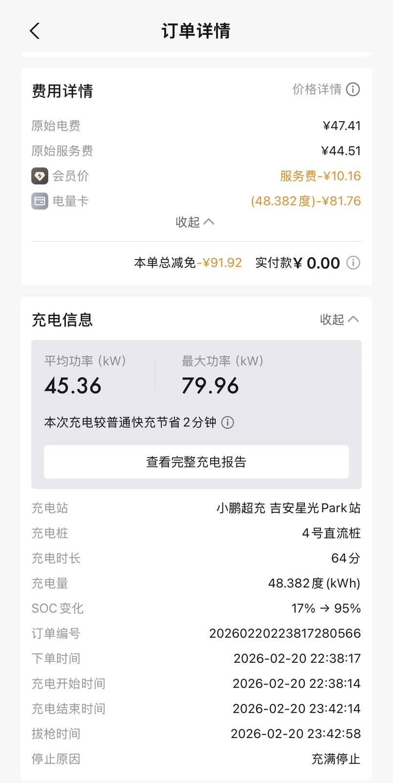 小鹏家桩充到100%,满电出发!