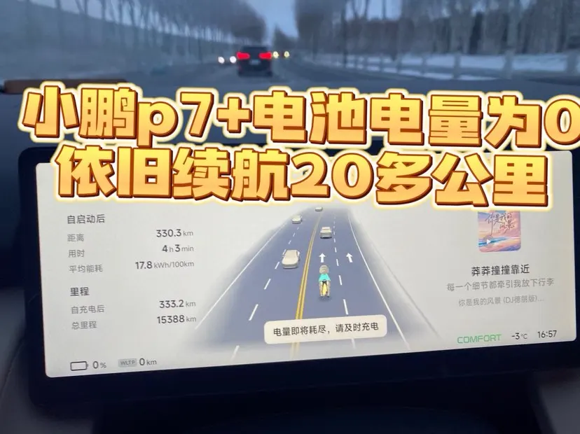 第二👉赞赞小鹏p7+续航扎实真的太赞了👍,这种极端天气,又遇堵车,驾驶时长为五个小时,座椅💺加热打开,空调二档25度,续航达成率百分之75,道路湿滑难行又堵车,电池🪫为零,还能跑20多公里,真的超出所有人的预期,家人也很担忧到底能不能到达,我也是顶的很大压力继续前行,告诉他们要相信小鹏三电续航能力,真没想到没有被狠狠打脸,赢得了认可,平平安安到家,家人们谁懂啊这波操作😍😍