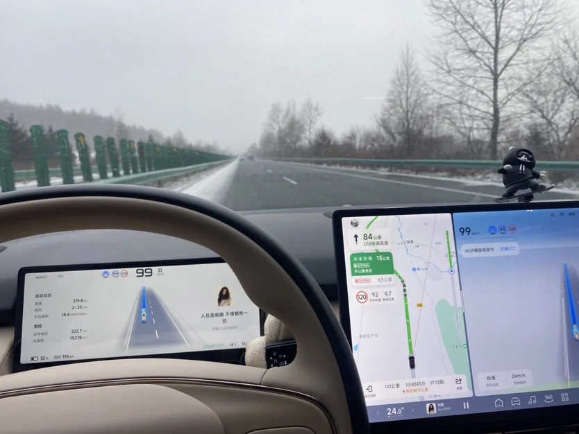 第一👉夸夸在这样极端天气,小鹏的智能辅助驾驶不愧第一梯队,返程路线牡丹江-哈尔滨,上午高速全线封闭,下午才开通,路程约360公里,天气☁️为爆❄️,温度为负十度,路面及其难走,能见度也非常低,这种路面对于我十多年老司机也是比较头疼🤕,没想到小鹏NGP必老司机还要稳,变道超车,拐弯减速无顿挫感,相当丝滑,更要和大家说下,有一段路能见度不足一米,小P提醒🔔路况受限🚫,自动退出NGP,安全才是最大的豪华,让你突然觉得科技改变生活的意义,长途无忧,安心无忧,请家人们看看下面的图片和视频,给小P的NGP打个分