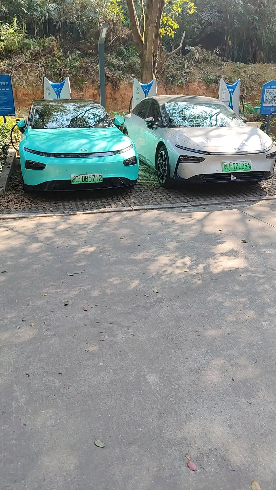 #一千座小鹏X9超级增程移动充电站# 一路上都是小鹏的桩,开的差不多了,搜一下,附近都要小鹏的桩,到了场站,地锁自动降下来,自动泊车进去,插上枪,出来散散步,一会儿就可以回来继续出发了。不过有的地锁被认为破坏了,要及时修理啊。