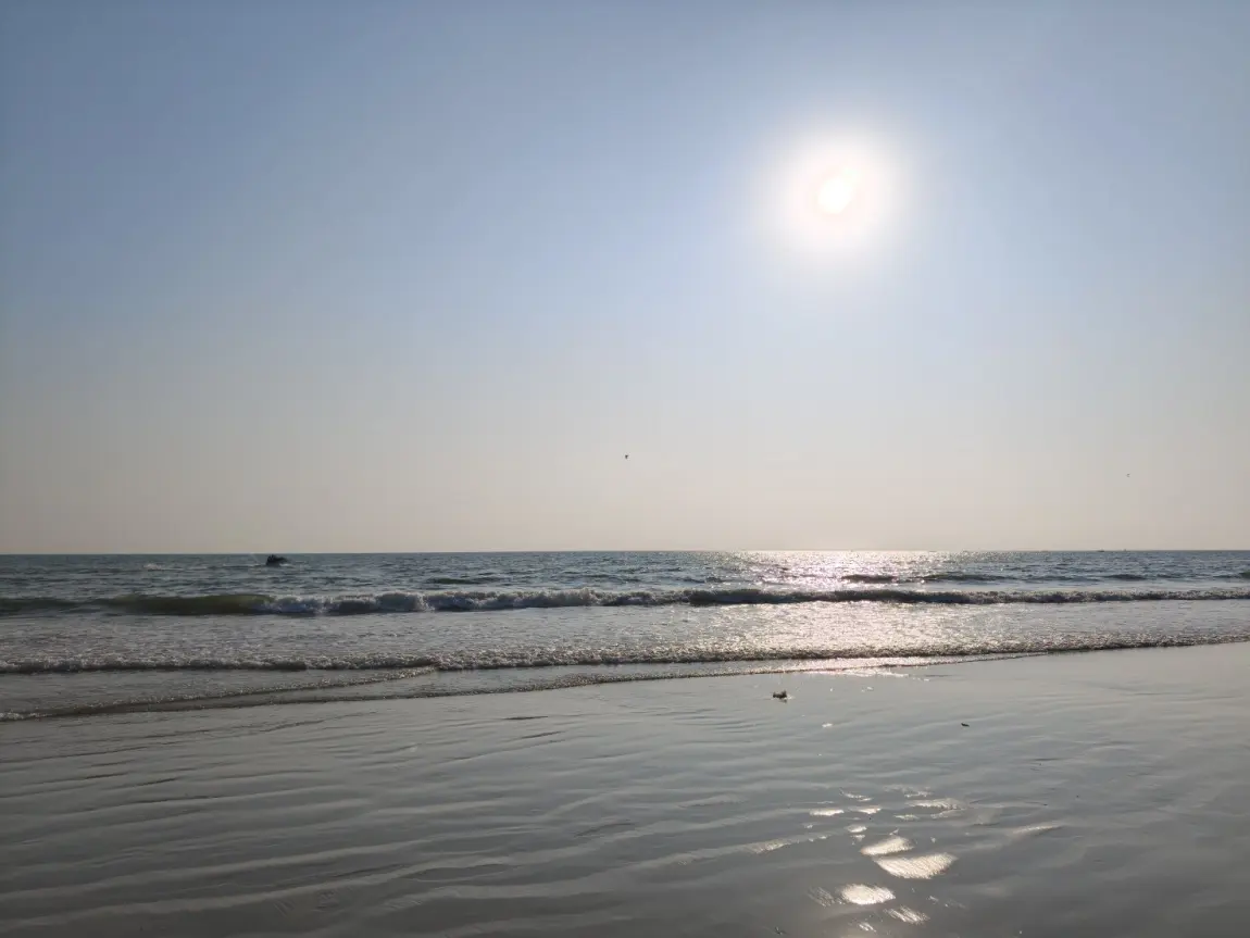 抵达海边时,恰好赶上夕阳西下。停好车,看落日把天空和海面染成温柔的橘红色,波光粼粼的海面像撒了一层碎金,与爱人的身影交叠成诗。
