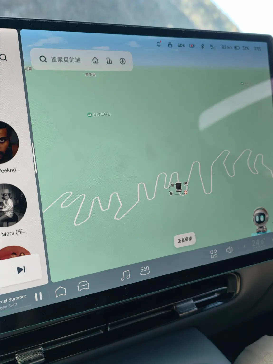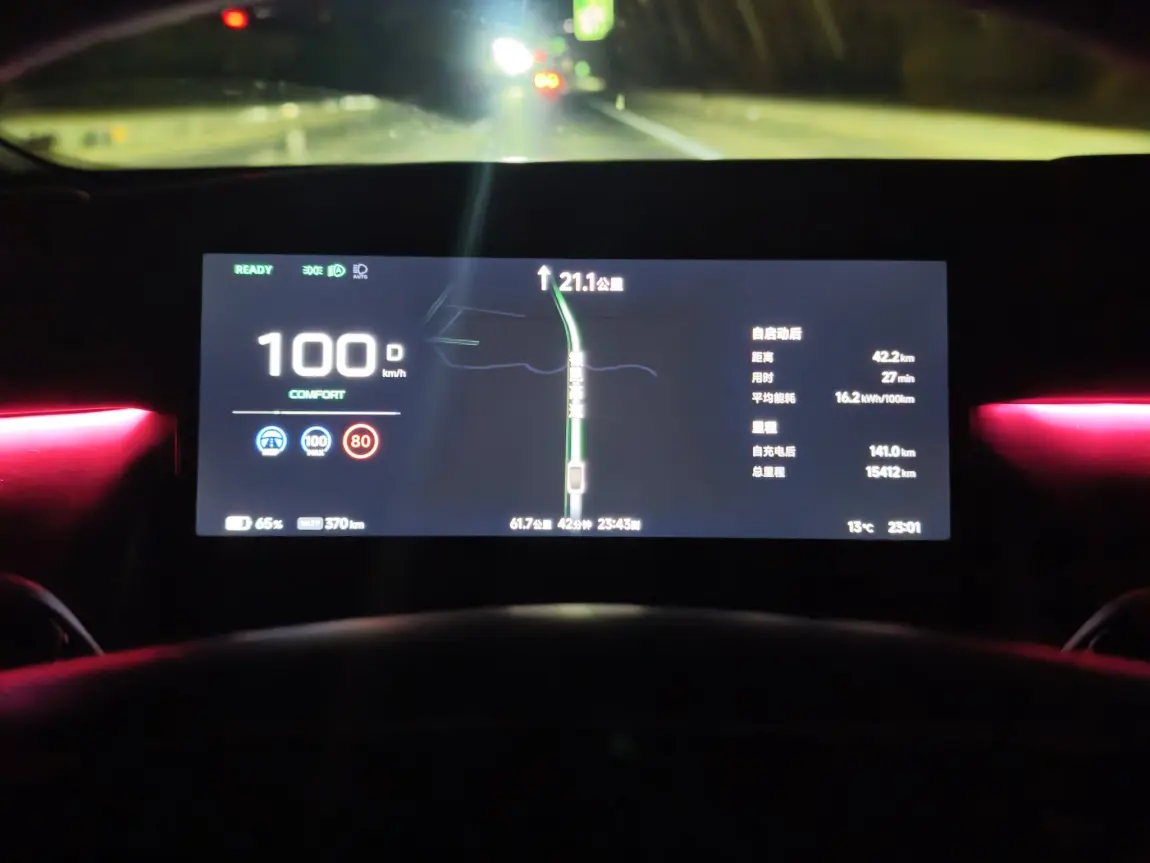 底盘比较高,通过性还是不错的,而且800v的能量回收能力太强了,上山17公里掉50公里电,下山17公里回收56公里电,四舍五入充了6公里