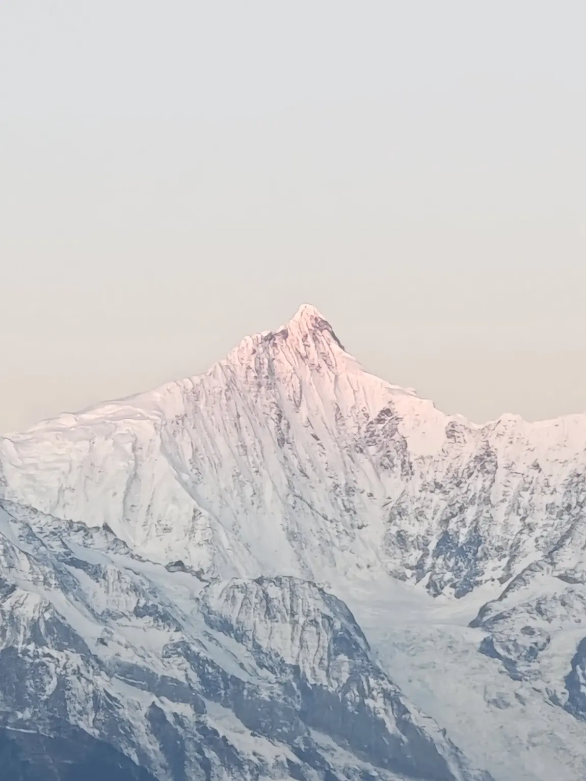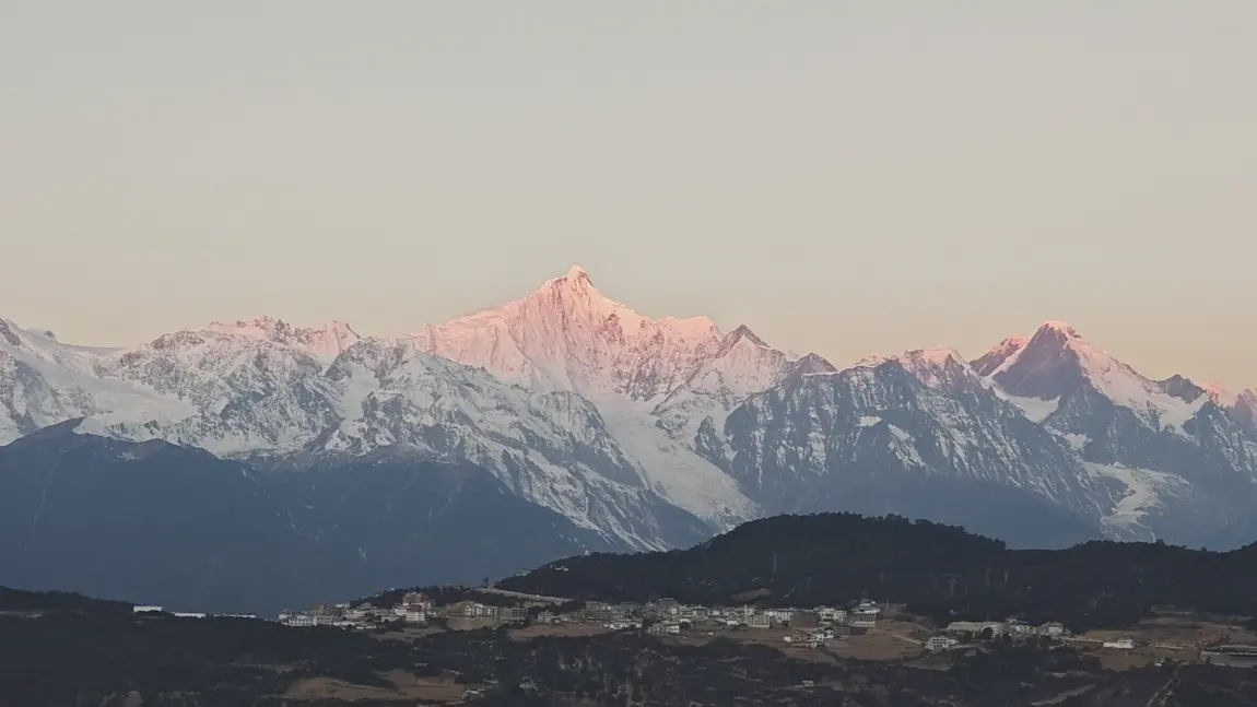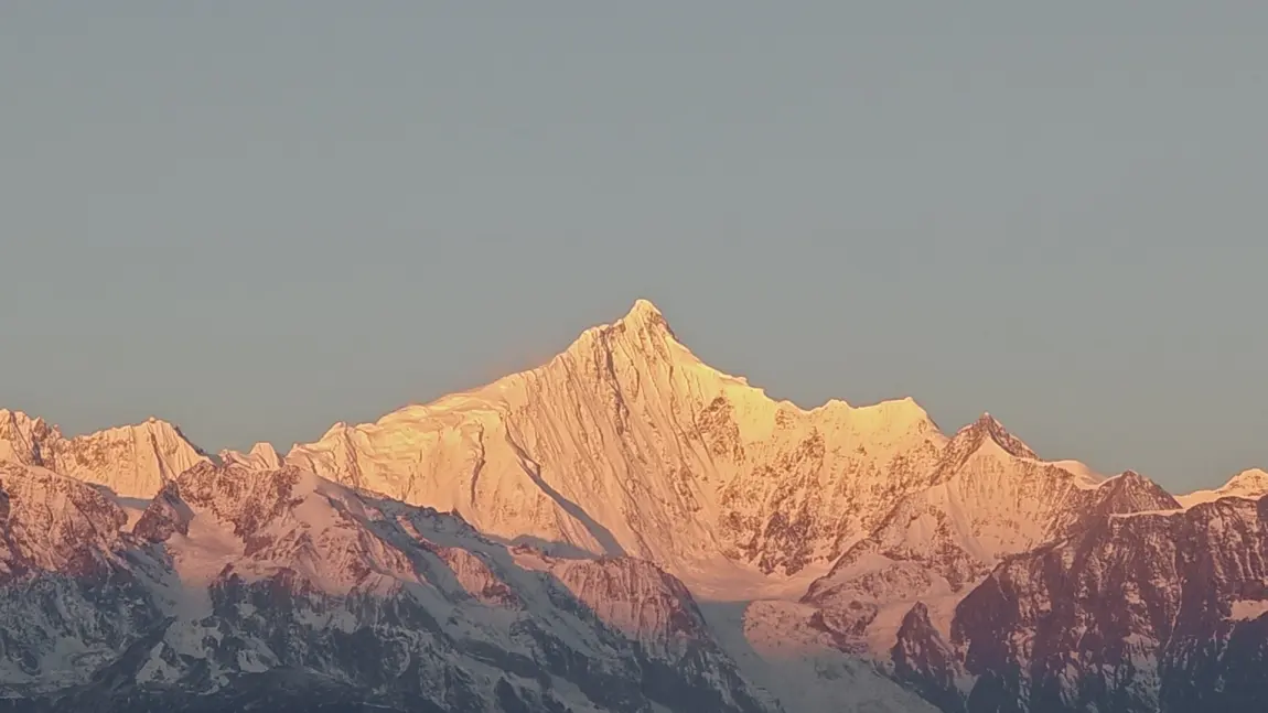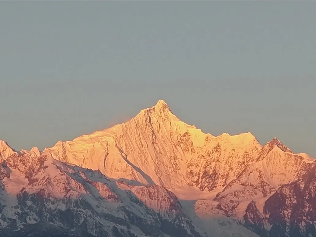 八点十分,天际线开始泛红。所有人都屏住呼吸,注视着对面的神山。卡瓦格博峰率先被点燃,那是一种无法用语言形容的金色,庄严、神圣、震撼人心。那一刻,眼眶竟有些湿润。这不是矫情,是面对极致壮美时的本能反应。梅里雪山,用它短短几分钟的日照金山,馈赠了我们所有的奔波与期待。带着这份满足,上午十点,我们终于踏上归途。