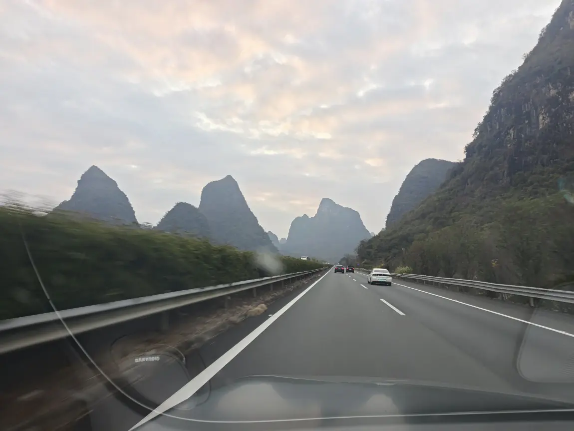 上午十点,珠海的风还带着咸湿的海味,我们的车轮已经转动,一家老小五人向着桂北的方向。不是为了抵达,而是为了逃离——逃离熟悉的街巷,奔赴一场与山水和雪山的约会。窗外景色渐次变化,平原隆起为丘陵,当暮色四合,阳朔的山峰如墨色剪影般一座座从车窗外掠过时,我知道,我们到了。今夜,枕着对漓江的想象入眠。(高速上充了一次电80元)