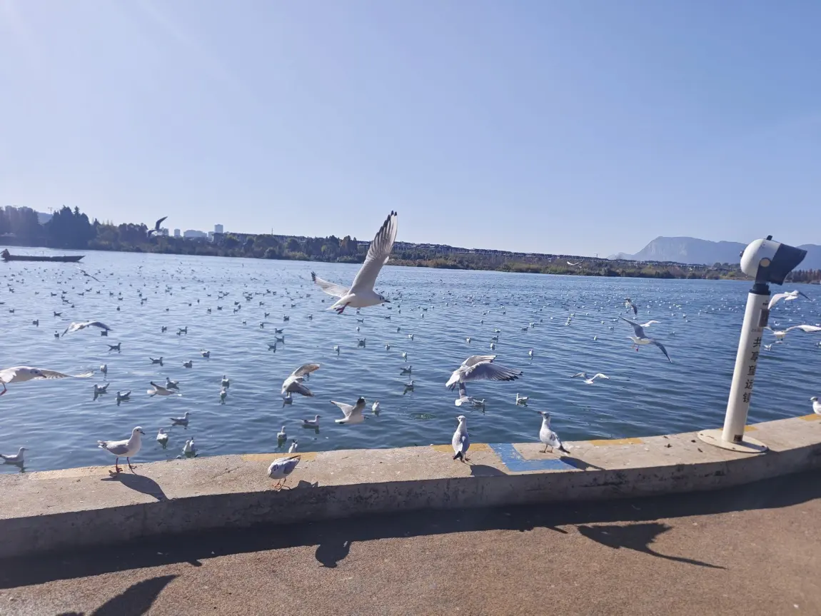 一夜奔驰,当晨光再次亮起,我们已在昆明。大观楼外,滇池波光粼粼,一群群从西伯利亚远道而来的红嘴鸥,是这座城市冬日最灵动的名片。它们盘旋、俯冲、啄食指尖的面包,翅膀扇动的声音里,仿佛能听见贝加尔湖的风。下午,放慢脚步,钻进昆明老街的肌理。在胜利堂的酒杯楼前驻足,光滑的石板路和斑驳的墙壁,像一位沉默的老者,讲述着春城的旧事。(桂林满电出发,中途充一次电140元)